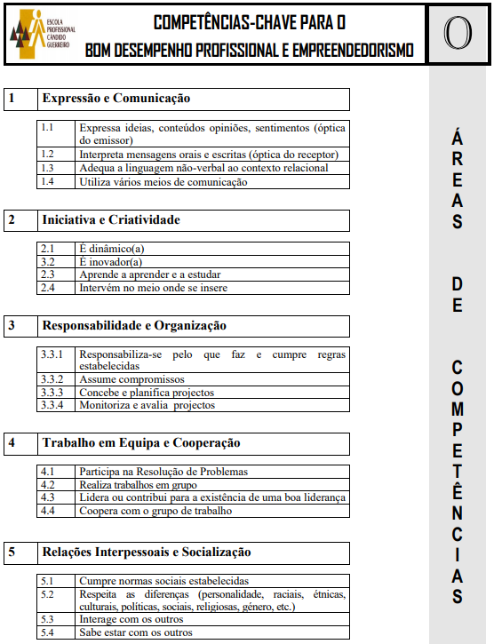 No sentido de operar com estes princípios e valores de atuação no âmbito da concretização do projeto educativo, entendidos como essenciais ao crescimento das instituições, do indivíduo e da sociedade, foi criado o Referencial de Competências-Chave para o Empreendedorismo porque, sem que existam pessoas, instituições e daí decorrente, comunidades empreendedoras, estas definham e morrem, sucumbem aos mais fortes.